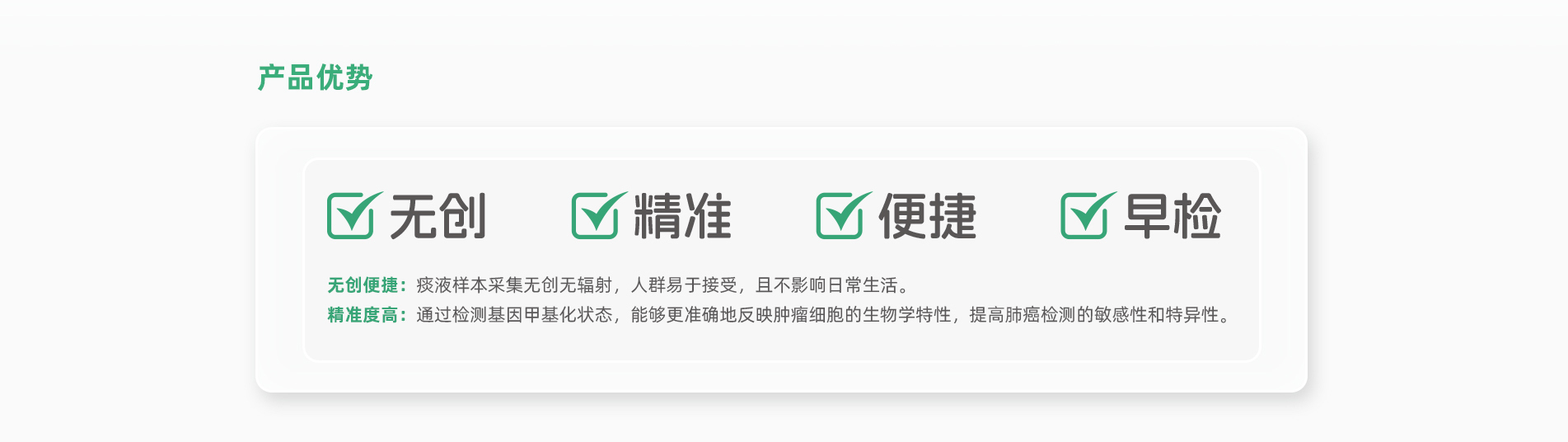 會(huì)安心?人類HOXB4、SRCIN1基因甲基化檢測(cè)試劑盒(熒光PCR法)于2025年5月29日正式獲批上市,這是首個(gè)痰液肺癌甲基化檢測(cè)試劑盒。 會(huì)安心?通過(guò)解讀痰液中脫落腫瘤細(xì)胞的基因異常改變(人類HOXB4、SRCIN1基因甲基化)進(jìn)行肺癌的早期檢測(cè),幫助發(fā)現(xiàn)患者早期肺癌病變情 況, 有希望將肺癌阻斷在早期階段,從而達(dá)到提前預(yù)防和治療肺癌的目的。
