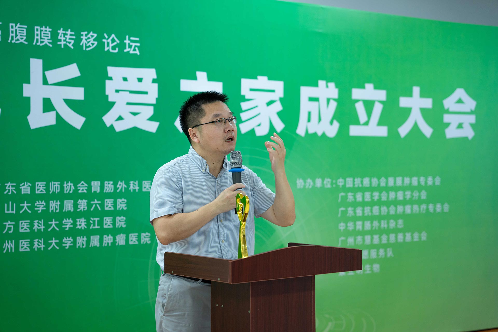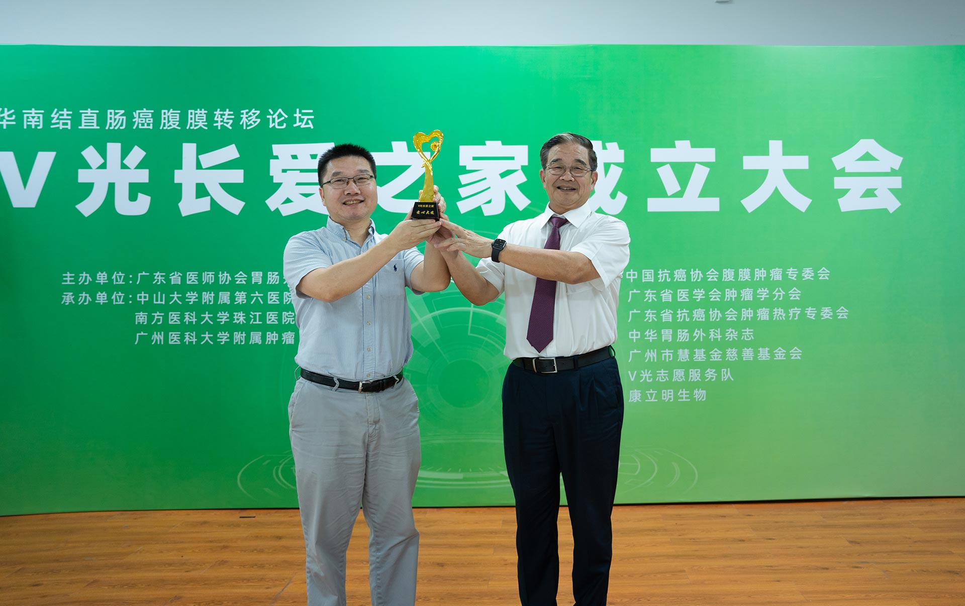 在成立大會(huì)上,“V光長(zhǎng)愛之家”為鄒鴻志教授頒發(fā)了“V光長(zhǎng)愛之家愛心大使”獎(jiǎng)杯,作為腸癌早篩技術(shù)發(fā)明人,感謝鄒鴻志博士對(duì)腸癌檢測(cè)預(yù)防事業(yè)的付出及對(duì)公益事業(yè)的大力支持。